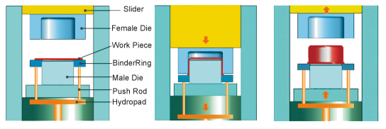 Stretch forming is mainly sui for plasticity material: metal or non-metal forming, stretching, plastic trimming, etc. Can suppress the typical products: auto parts, metal parts, kitchenware, ware, etc.